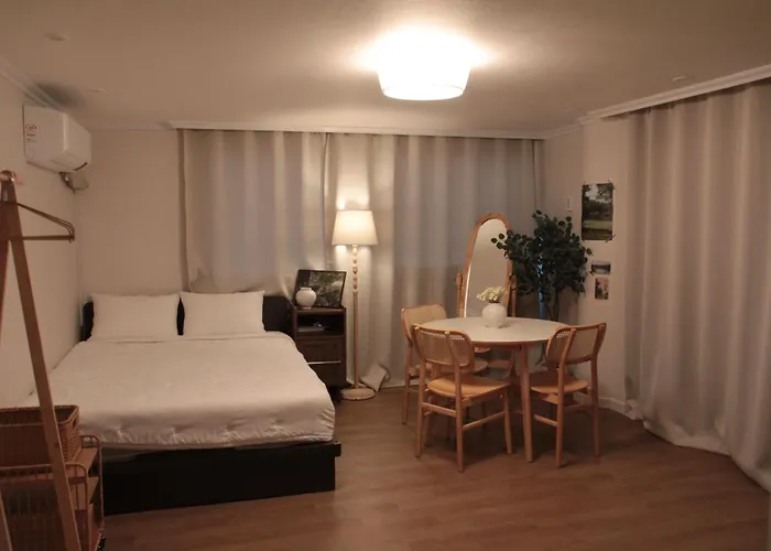 O Nurida Apartamento Seul de 49 m² está situado no bairro Jongno-Gu em Seul, e oferece acesso rápido ao Palácio Gyeongbokgung, que fica a 9 minutos de distância a pé. O Wi-Fi é fornecido para atividades empresariais e de lazer.